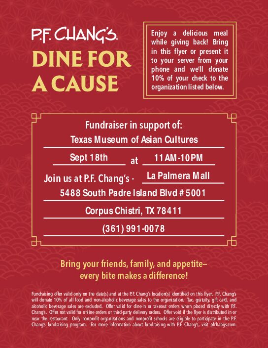 What: Dine for a Cause – P.F. Chang’s Fundraiser for the Texas State Museum of Asian